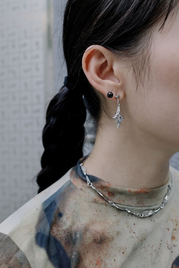 透明水晶菱形吊墜穿式耳環,DENPA GINGA
