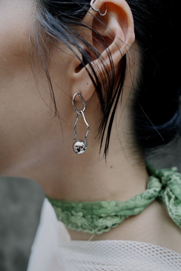 波浪線條金屬球球穿式耳環,DENPA GINGA