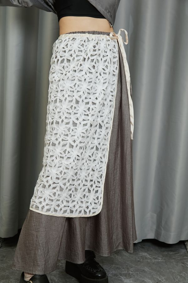 【現貨5折】米白色捲捲立體織花綁帶圍裙