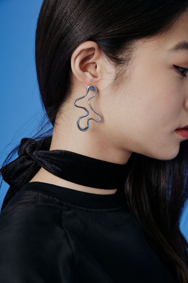 波浪曲線不規則金屬大耳環,DENPA GINGA